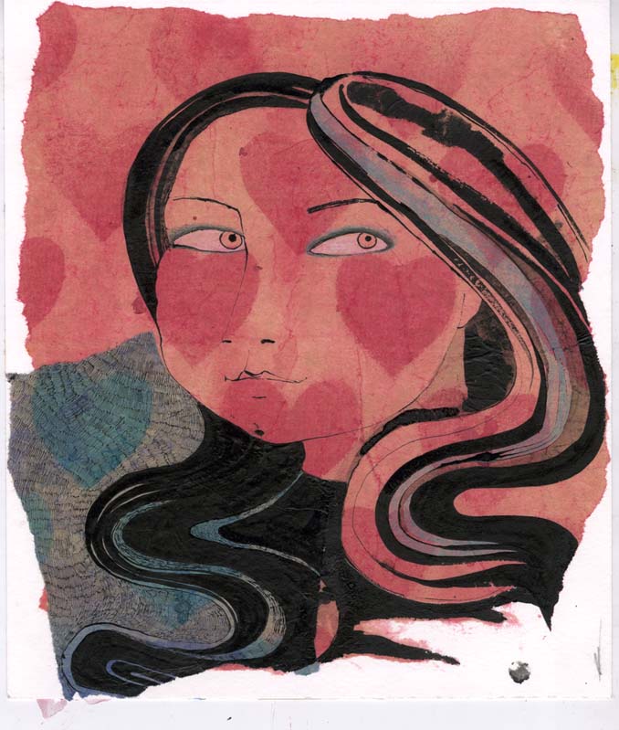 I was looking through some old work the other day and came across these two loveheart ladies. They are made with collaged tissue paper, ink and coloured pencil. I can’t really remember what prompted me to come up with these but I always rather liked them!