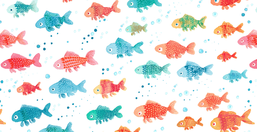 I have been away from my studio recently and travelling light with just my tiny water colour set to keep me company. I had forgotten how lovely water colour is and how different it is to acrylic ink, which is what I use most of the time for illustrations. I love both mediums in different ways; FW inks are incredibly vivid and very versatile, but water colour has a beautiful quality to it. The colours are subtle and each one seems to settle on the page in a slightly different way. I am by no means an expert but I do like to play – here are some patterns I’ve been working on, the first three were painted with water colour and the ones beneath that are FW ink.