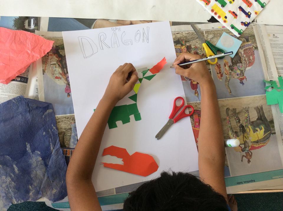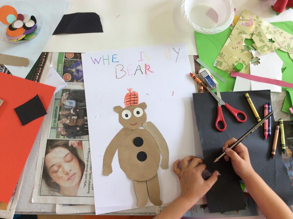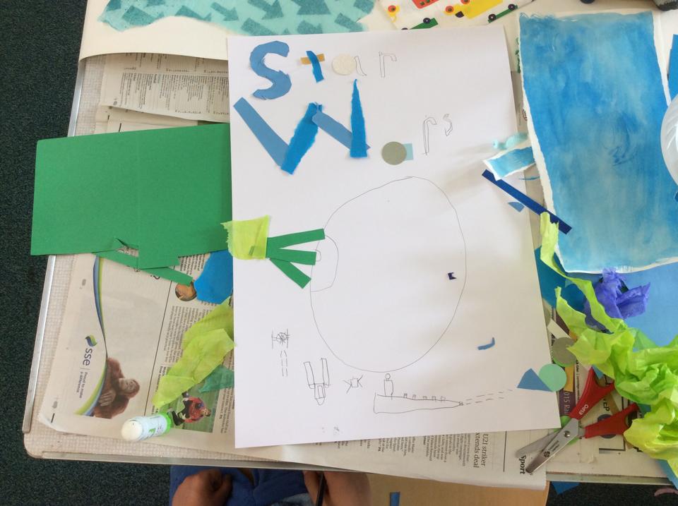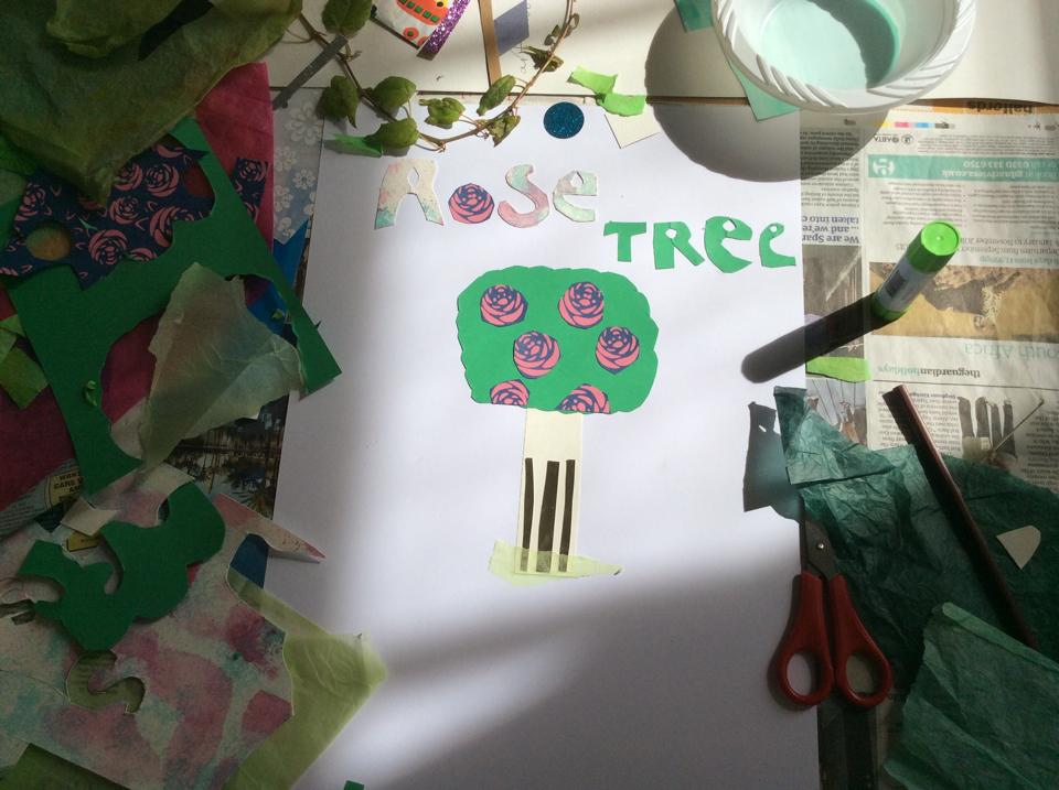 For me and fellow children’s book illustrator Nicola Killen, this month is all about Art Club. We are collaborating with Rock Road Library to hold a series of art workshops for children and yesterday was one of my favourites – collage day! The children worked with multi-coloured, glittery and hand-painted papers to create some beautiful and imaginative images. Inspiration came from toys, flowers and other random objects as well as an imaginary book cover for the final piece. Many thanks go to the wonderful Anne Worthington who has been a great help to us with Art Club. Have a look below to see some of the children’s fantastic collages!
