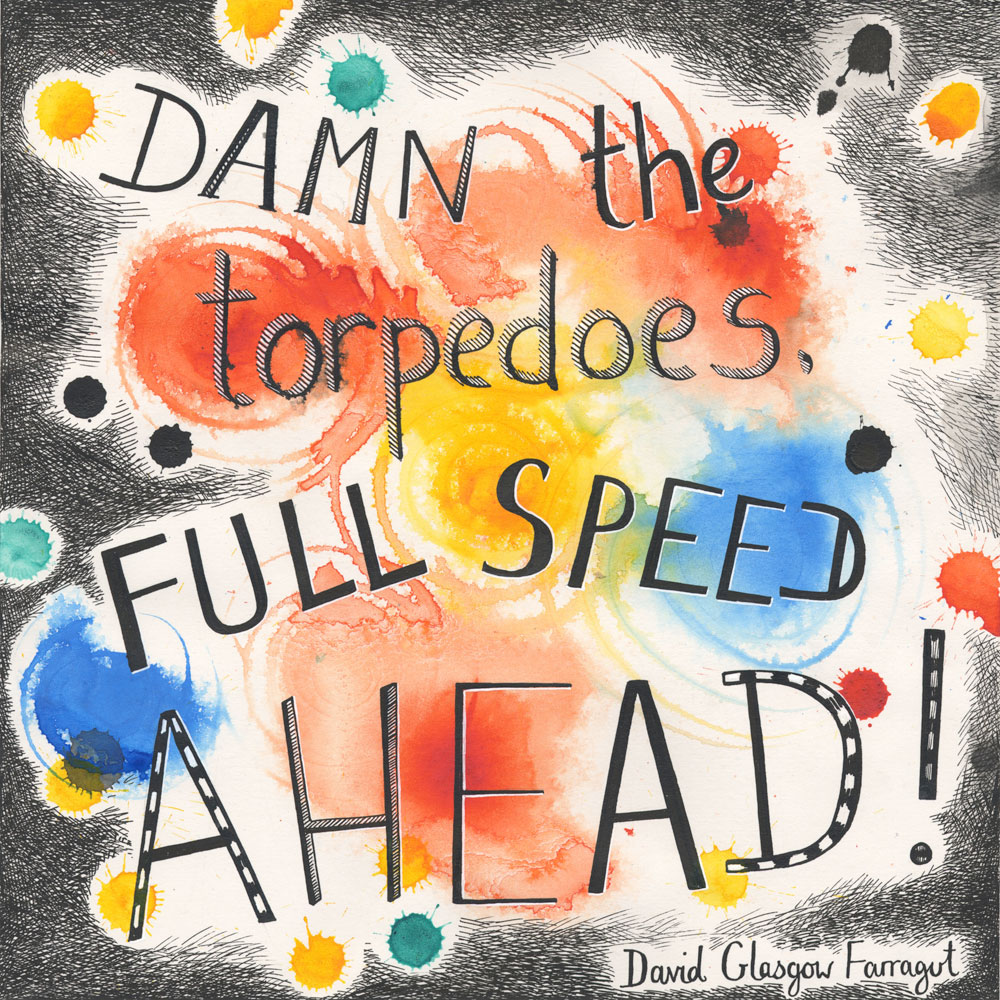 I have been trying my hand at something a little bit different just recently – Make It In Design are running a competition to illustrate an inspirational quote with the winner earning a place on their Ultimate Portfolio Builder course starting in a few weeks. If I’m honest I’m already signed up to do the course but I couldn’t resist entering the competition anyway! “Damn the torpedoes” has long been a favourite quote of mine and I recently discovered the wonderful “nothing is impossible…” said by Audrey Hepburn. These two images were made by hand with ink and collage and were positively therapeutic to work on!