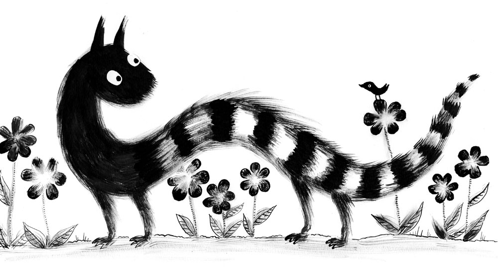Here are some inky drawings featuring creatures that don’t have an awful lot more in common than the number of feet they possess and the fact that I like drawing them! Above is a wingless dragon and below a couple of horses and…well I’m not altogether certain what the one at the bottom is. I made these with my favourite exhausted 1 cm wedge brush and black acrylic ink. I think these creatures are trying to get me to write them a story…